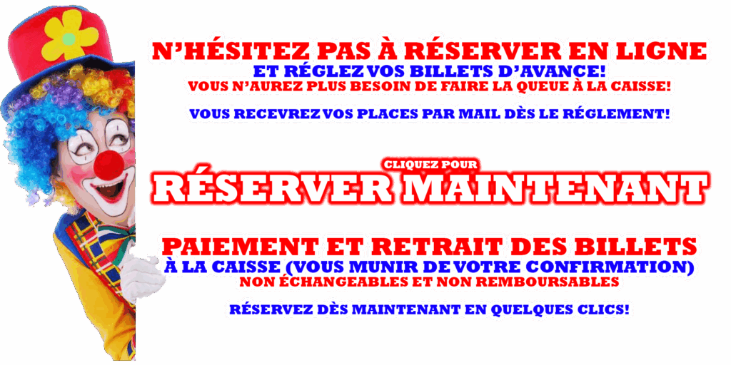 Vous pouvez à tout moment réserver vos places via le site et vous les retirez à la caisse du cirque 30 minutes avant le spectacle après les avoir réglées.