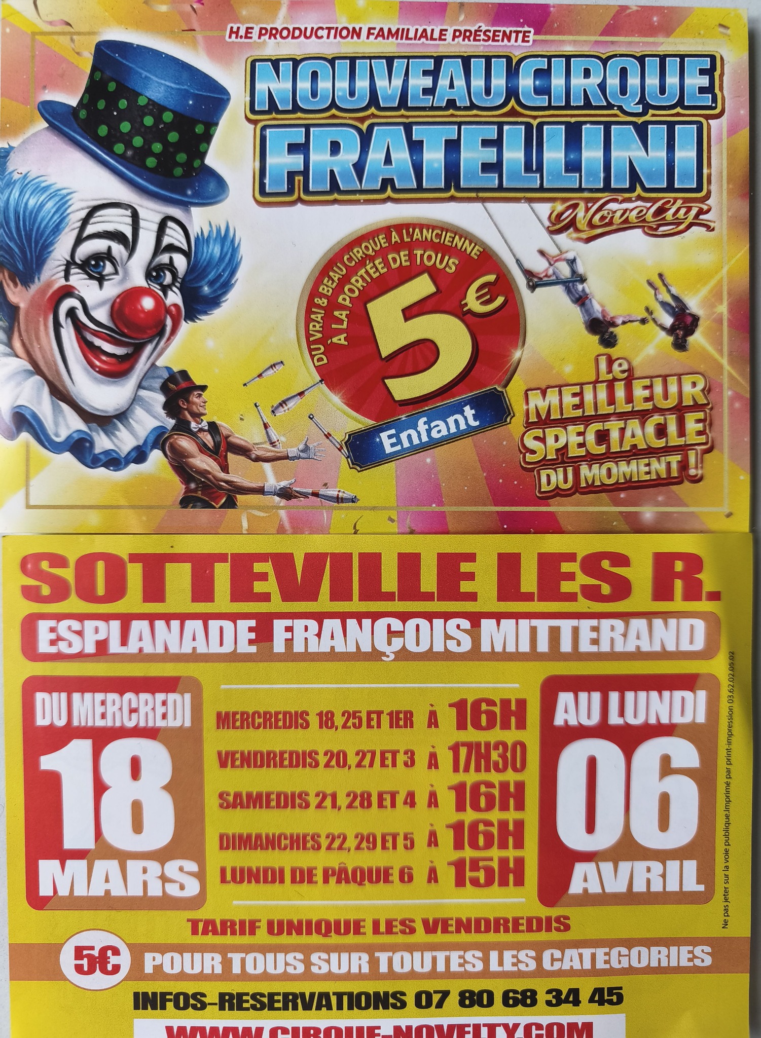Sotteville Les Rouen - Mercredi 18/03 à 16hSotteville Les Rouen - Vendredi 20 mars : 17h30 (5€ pour tous)Sotteville Les Rouen - Samedi 21 mars : 16h00Sotteville Les Rouen - Dimanche 22 mars : 16h00Sotteville Les Rouen - Mercredi 25 mars : 16h00Sotteville Les Rouen - Vendredi 27 mars : 17h30 (5€ pour tous)Sotteville Les Rouen - Samedi 28 mars : 16h00Sotteville Les Rouen - Dimanche 29 mars : 16h00Sotteville Les Rouen - Mercredi 1er avril : 16h00Sotteville Les Rouen - Vendredi 03 avril : 17h30 (5€ pour tous)Sotteville Les Rouen - Samedi 04 avril : 16h00Sotteville Les Rouen - Dimanche 05 avril : 16h00Sotteville Les Rouen - Lundi 06 avril : 15h00